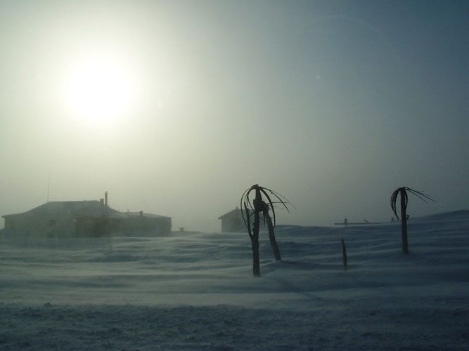 People say that we have no trees up here in Barrow, but they must not know about our three palm trees! Driftwood with baleen nailed on top and a few coconuts makes a true arctic oasis!