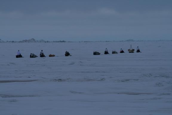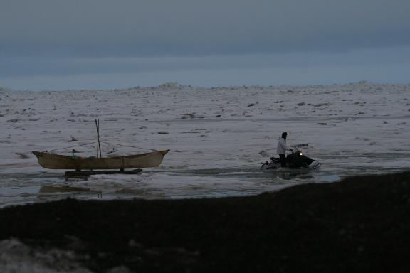 Here are some pictures from last Friday evening while the Akootchook Whaling Crew headed out to the whaling camp located on the shore ice about a mile off of the locked in shore ice here in Barrow, Alaska..
