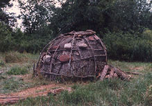 A bark covered wigwam built by Jeff Kaline for the Connecticut Museum of Natural History. |